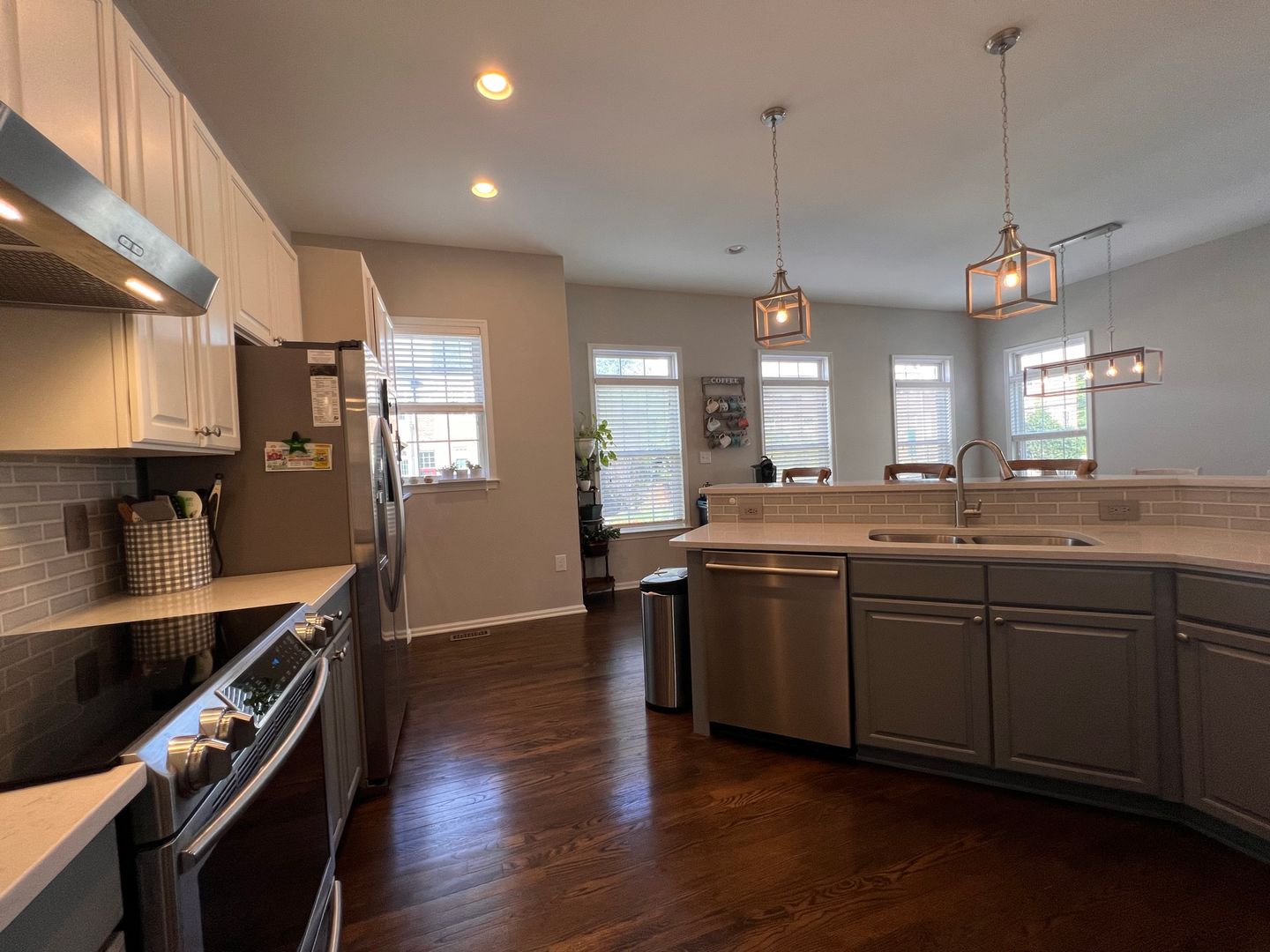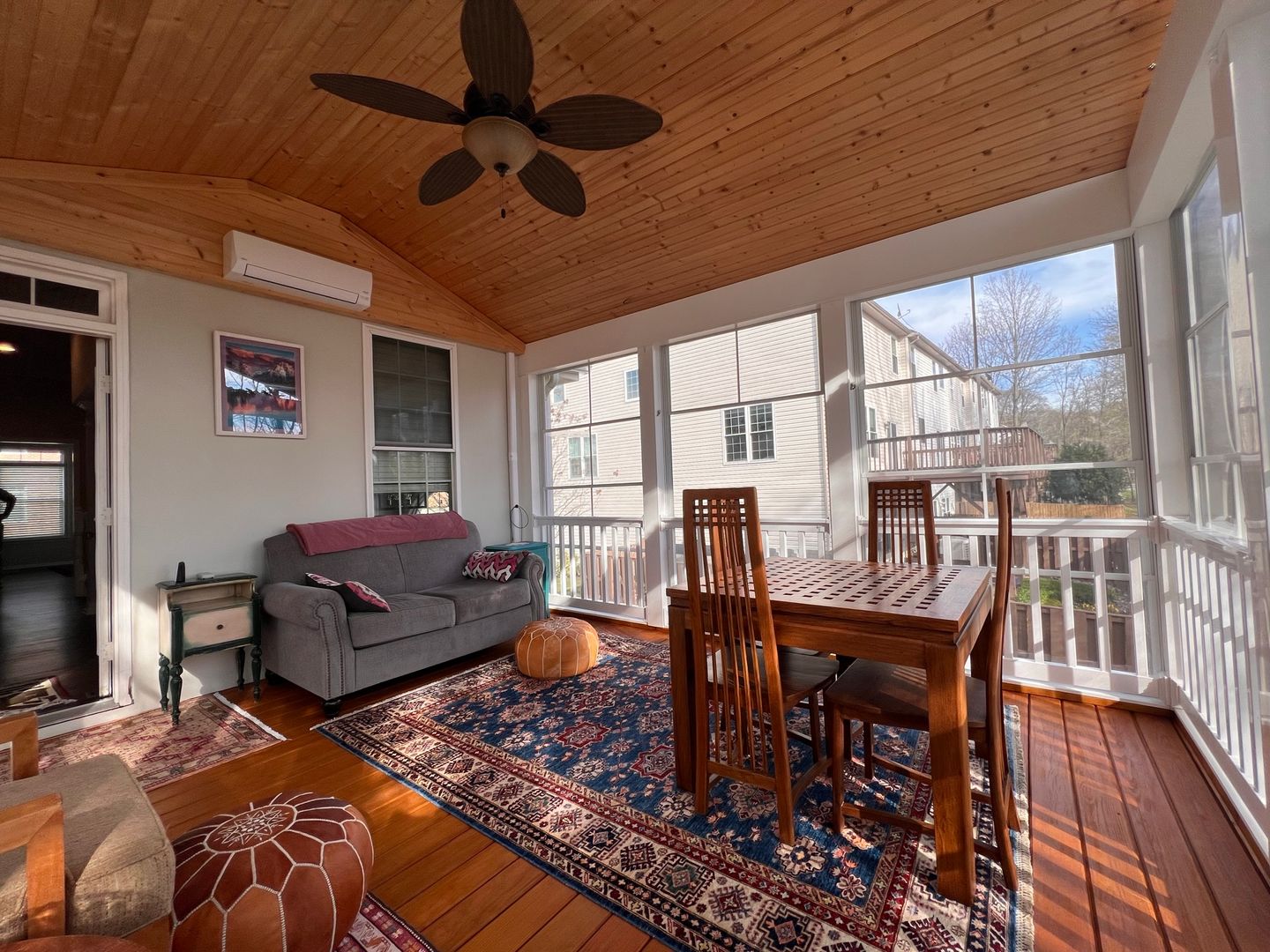 WELCOME HOME to this Meticulously maintained End Unit Townhome in sought after Lowes Island. The owners have thoughtfully included every feature and intricate detail to ensure tranquility, comfort, and pure pleasure during those days at home. This home is a chef and entertainer's dream which includes over 2700 finished square feet, 3-fully finished levels, 4-season enclosed deck, and a finished walk-out basement to landscaped backyard with privacy fencing that backs to trees. This 2-Car Garage End Unit Townhome includes entry through the garage and front main entry. The Main Level features an open floor plan with stunning hardwood flooring, expansive living room with gas fireplace. Linger to the 4-season deck with cooling and heating elements coupled with open adjoining deck for grilling. The kitchen is huge with stunning granite coutertops, bar, stainless steel appliances, induction range, built-in oven and microwave, refrigerator with ice maker and water dispenser. Delight in the morning sun in the breakfast room and huge dining area. The Upper Level includes a large Primary Suite with Walk-In closet, convenience of a stacked Washer and Dryer, and an adjoining Primary Luxury Bath with Dual Vanities and Heated Floors. Additional oversized 2 Bedrooms and Full Bath. The Lower Level is Fully Finished and Improved Walk-Out Basement includes plush carpet, warmth of an additional gas fireplace, a projector and screen for movie and sports nights, a full bath, and hookup for an additional washer and dryer, if desired.